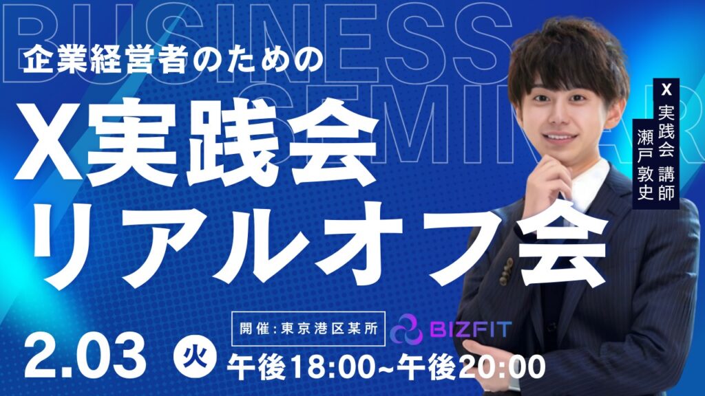 BIZFIT内の活動を外部(X)へ発信し、事業PRやブランディングを強化するための実践型コミュニティです。 100社以上の運用支援実績を持つ講師が、リード獲得や売上に直結するノウハウを会員限定で伝授します。 【主なサポート内容】 戦略立案: ゼロからのアカウント設計と独自の強みを活かす発信設計 実践支援: 刺さる投稿の作り方、直接添削・フィードバック 継続環境: 習慣化のサポートと、メンバー同士で応援し合える仲間づくり